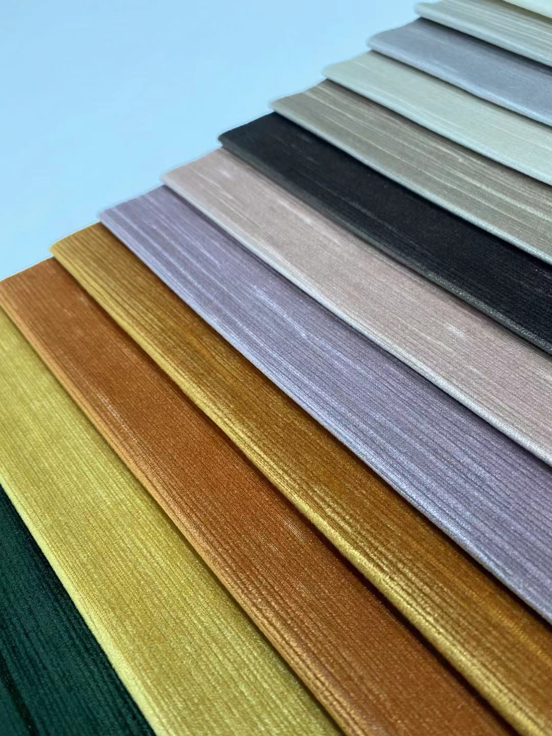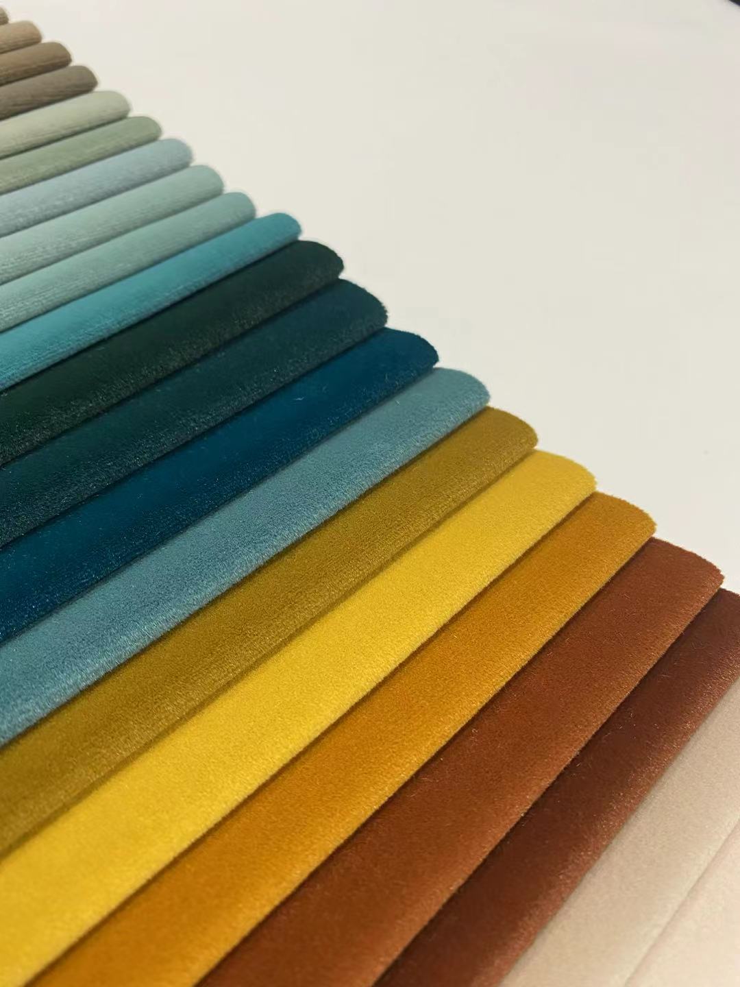 전반적으로 폴리에스터 벨벳과 다른 종류의 벨벳 원단의 주요 차이점은 제조 공정, 내구성, 질감입니다. 폴리에스테르 벨벳은 보다 일관된 질감과 패턴, 더 뛰어난 내구성, 선택할 수 있는 색상과 패턴의 폭이 넓어 다양한 응용 분야에서 인기가 높습니다.