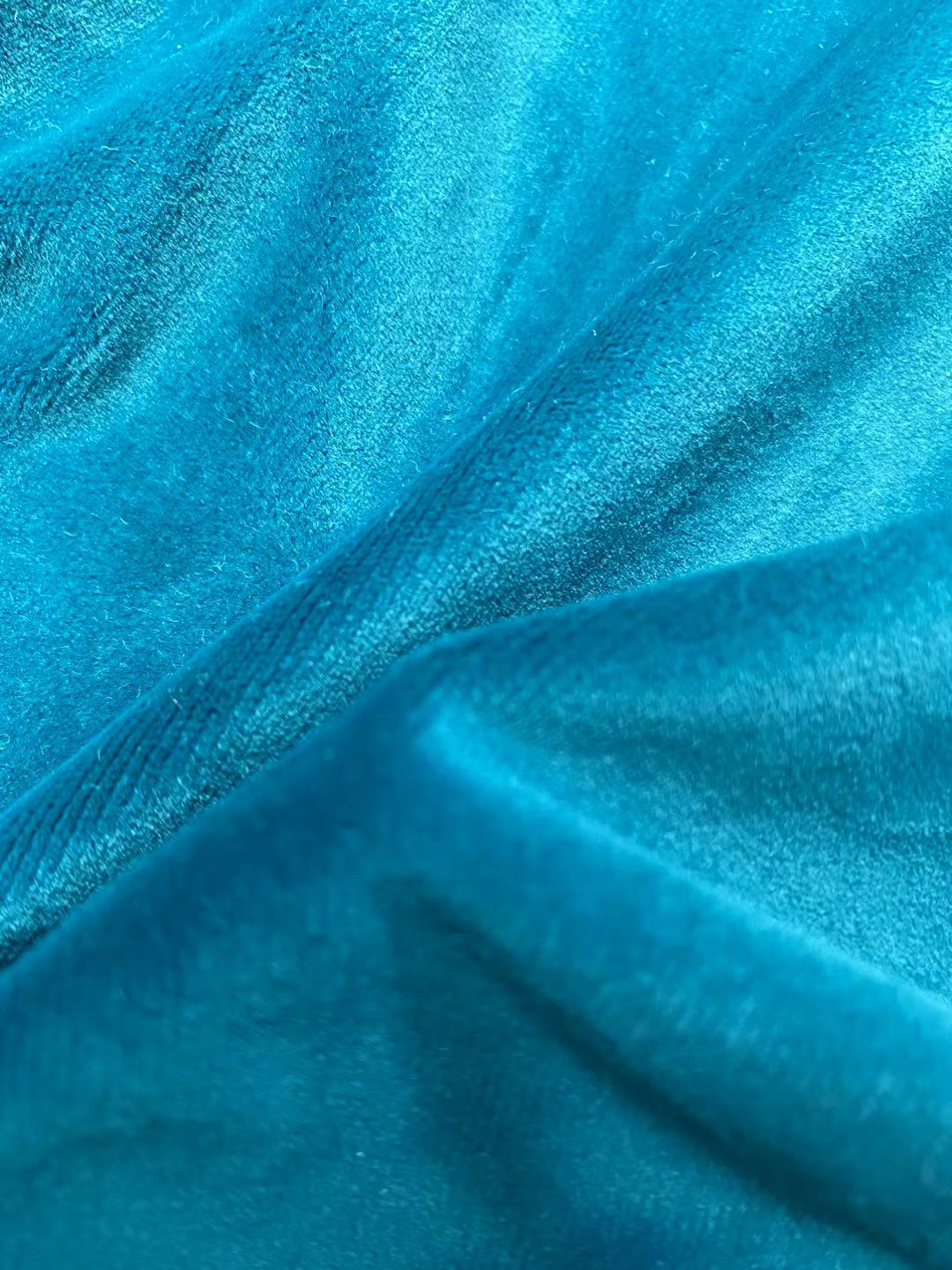 폴리에스테르 벨벳 원단은 폴리에스테르 섬유로 만든 합성 벨벳 원단의 일종입니다. 폴리에스테르 벨벳과 다른 유형의 벨벳의 주요 차이점 중 하나는 제조 공정입니다. 폴리에스테르 벨벳은 일반적으로 기계 직조 공정을 사용하여 제조되므로 직물의 질감과 패턴의 일관성이 향상됩니다.